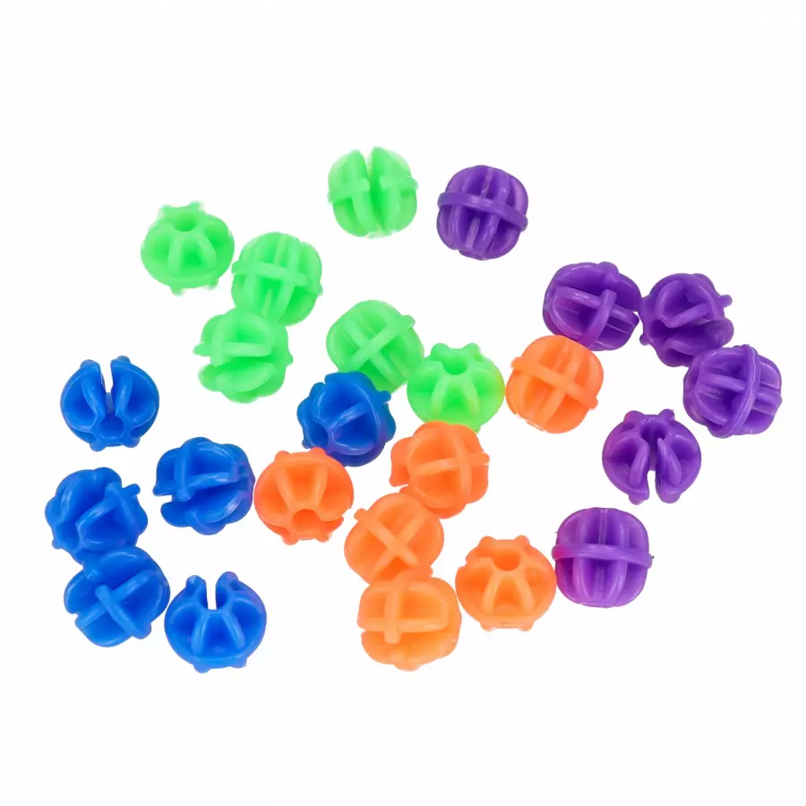 Koraliki wykonane są z lekkiego i trwałego tworzywa sztucznego.