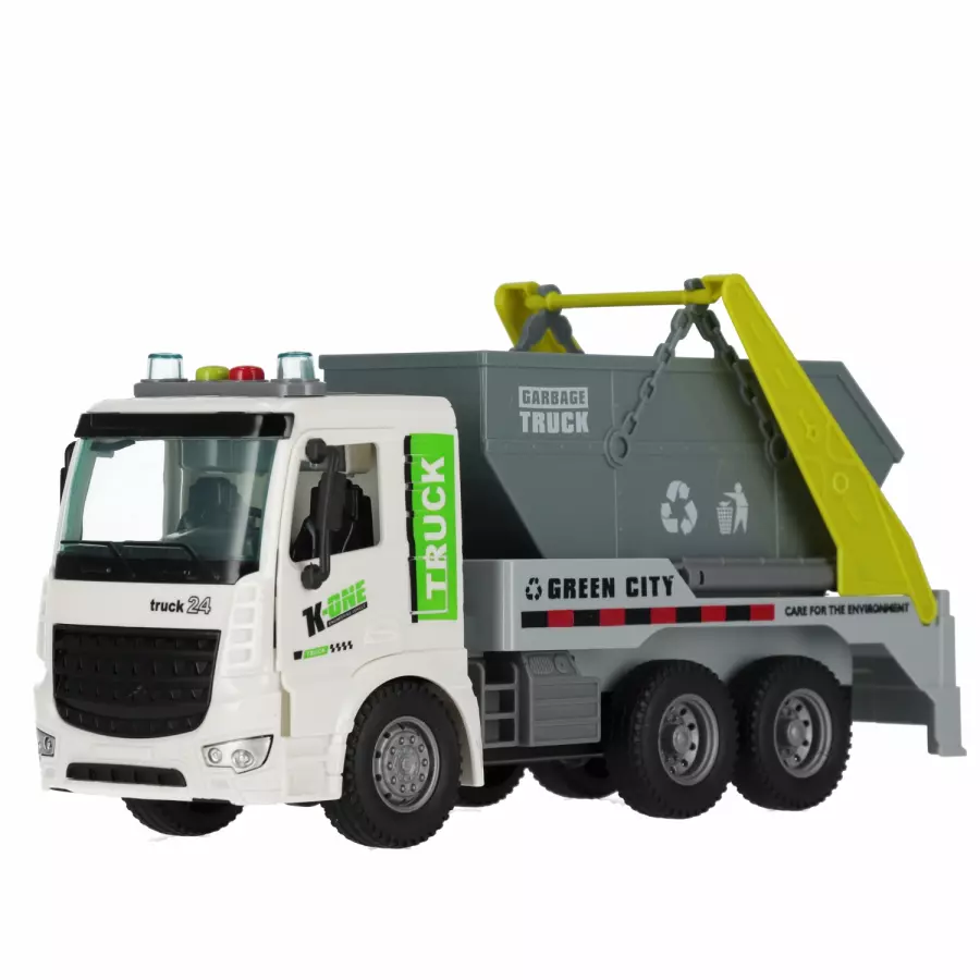 Pojazd wyposażony jest w funkcjonalne, ruchome elementy, takie jak mechanizm załadunku odpadów oraz otwierana tylna klapa, co pozwala dziecku odgrywać scenki z codziennej pracy śmieciarki. Zabawka wspiera rozwój wyobraźni, kreatywności oraz zdolności manualnych.