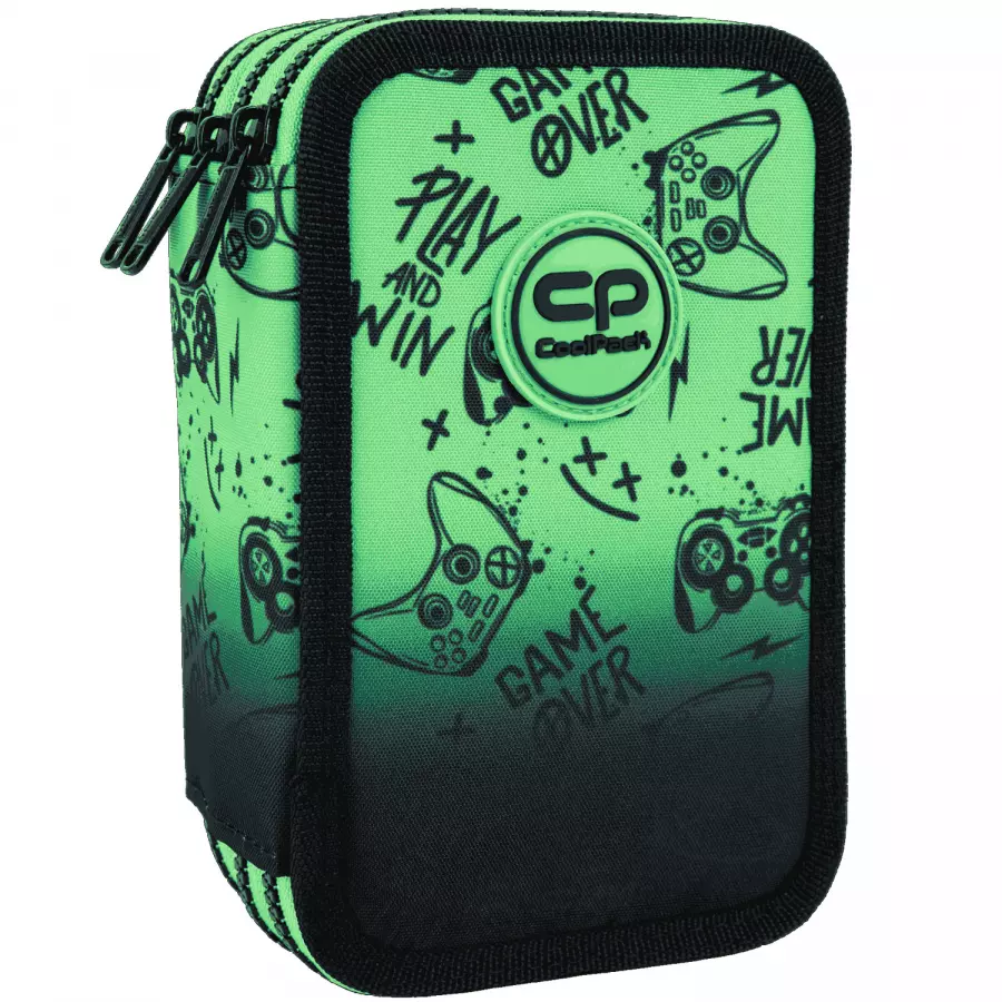 CoolPack Jumper 3 Piórnik Trzykomorowy Z Wyposażeniem Game Over Gradient Green F067969