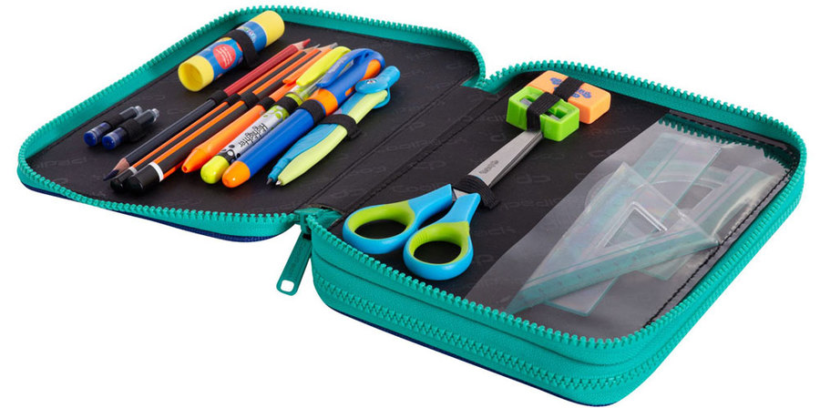 Dwukomorowy piórnik szkolny z serii CoolPack z bogatym wyposażeniem. Piórnik jest przyjemny w dotyku i bardzo łatwy w utrzymaniu w czystości - wystarczy przetrzeć wilgotną szmatką i gotowe. Idealna propozycja dla tych, którzy lubią porządek w piórniku. Każdy element znajdzie tam swoje miejsce. Piórniki CoolPack posiadają 2 komory zamykane na suwak. W jednej części piórnika CoolPack mieszczą się flamastry i kredki, w drugiej pozostałe przybory szkolne.