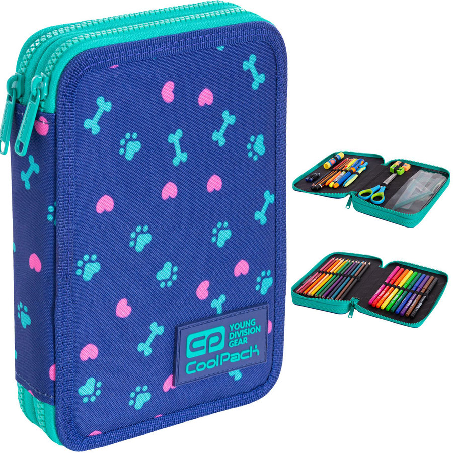 CoolPack Jumper XL Piórnik Dwukomorowy Z Wyposażeniem Puppy Love C77253