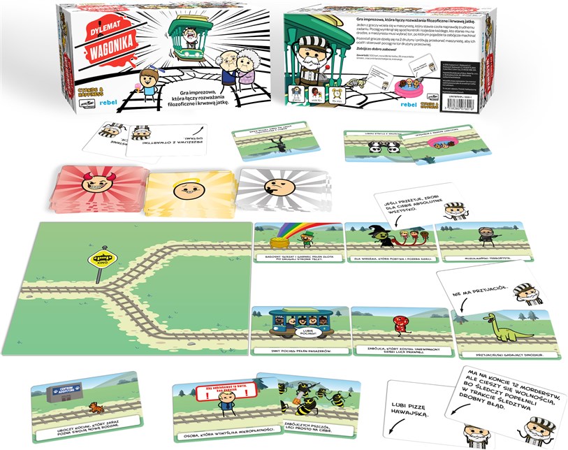 Dylemat wagonika to imprezowa gra karciana przeznaczona dla osób pełnoletnich. Łączy filozoficzne rozważania z krwawą jatką i zmusza uczestników do podejmowania trudnych moralnie decyzji.