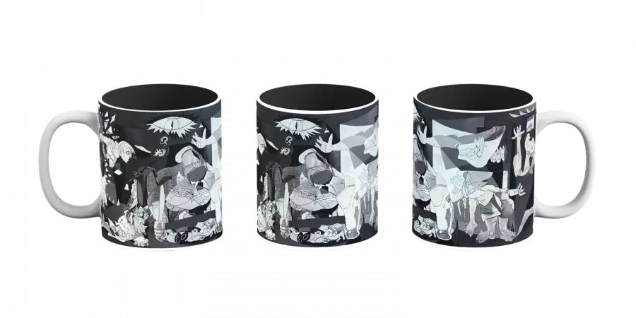 Unikalne połączenie sztuki klasycznej i kultowej wiedźmińskiej  sagi. Ten czarny kubek ceramiczny ozdobiony jest wyjątkową grafiką inspirowaną słynnym obrazem Guernica autorstwa Pabla Picassa, w której centralne miejsce zajmuje Ciri z serii Wiedźmin.
