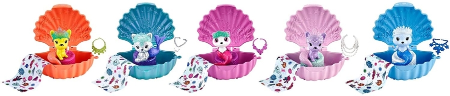 W zestawie jest zwierzątko-syrenka niespodzianka, ręczniczek, korona, akcesorium i schowek w kształcie muszelki.
