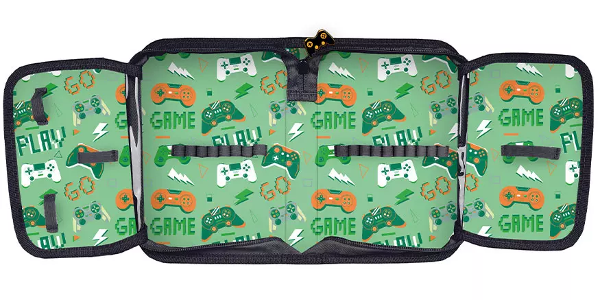 Wysokiej jakości piórnik szkolny bez wyposażenia. Piórniki wyróżnia nasycona kolorystyka aplikacji oraz atrakcyjne wzory. Piórnik posiada jedną komorę oraz dwie wewnętrzne klapki. Wnętrze piórnika posiada liczne zakładki na akcesoria. Możesz wyposażyć piórnik według własnych potrzeb. W piórniku znajduje się miejsce na plan lekcji oraz tabliczkę mnożenia.