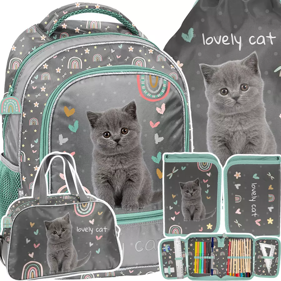 Paso Zestaw Szkolny 4el. Grey Cat Plecak PP26CS-260 + Piórnik PP26CS-P001 + Worek PP26CS-712 + Torba PP26CS-074