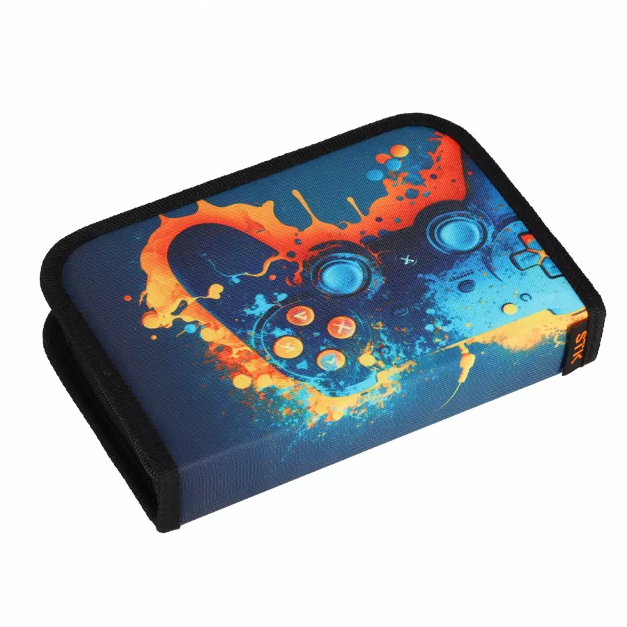 Duży piórnik z 2 skrzydełkami i elastycznymi uchwytami na przybory szkolne zapinany na mocny zamek.