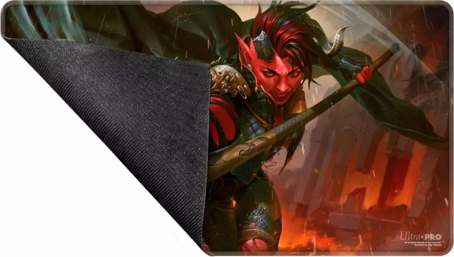 Ultra Pro: Magic the Gathering - Commander Series 7 - Stitched Edge Playmat - Karlach, Fury of Avernus idealnie sprawdzi się do gry w commandera, jak i zostanie doskonałą podkładką pod mysz do domu lub biura.