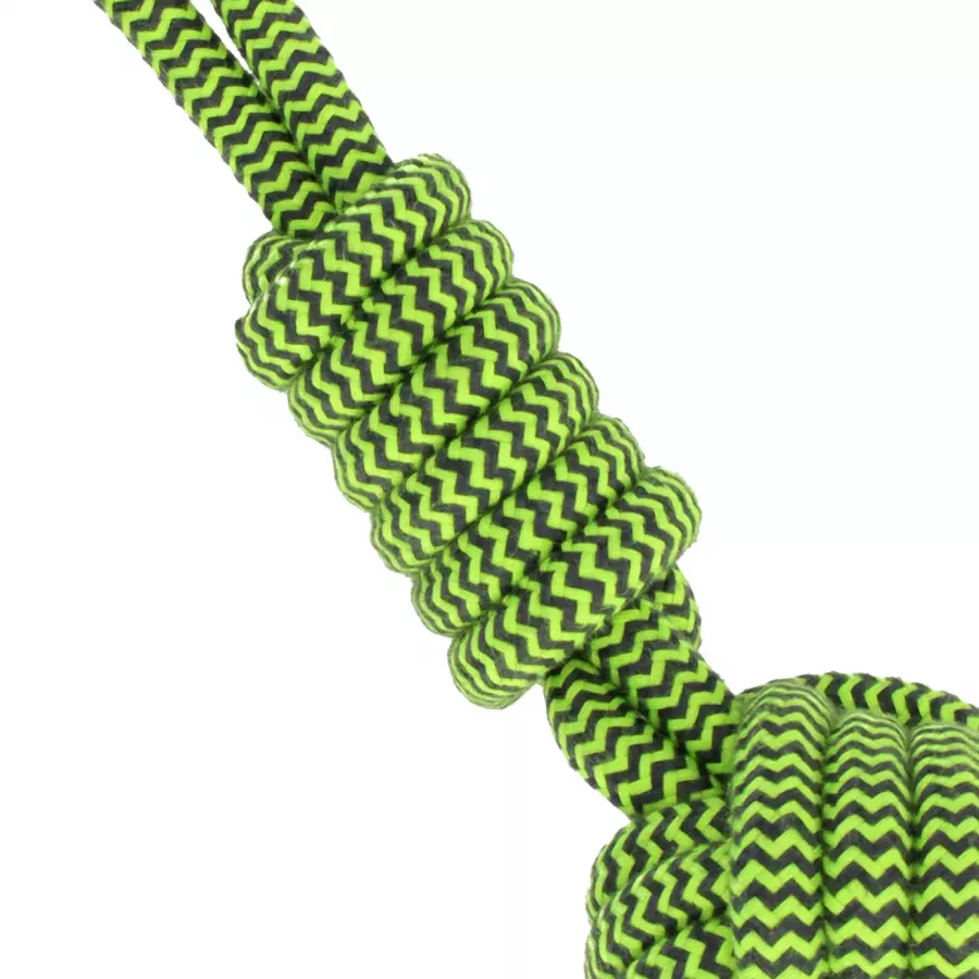 Zabawka wykonana jest z ciasno plecionego sznurka z dwoma supłami, 100 % bawełna.