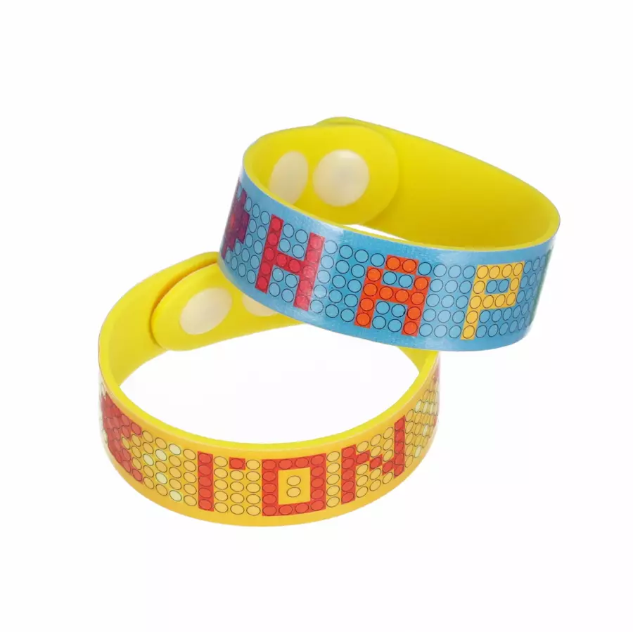 Zabawa polega na ozdabianiu bransoletki kolorowymi kryształkami metodą diamond painting, co rozwija kreatywność, cierpliwość oraz zdolności manualne.
