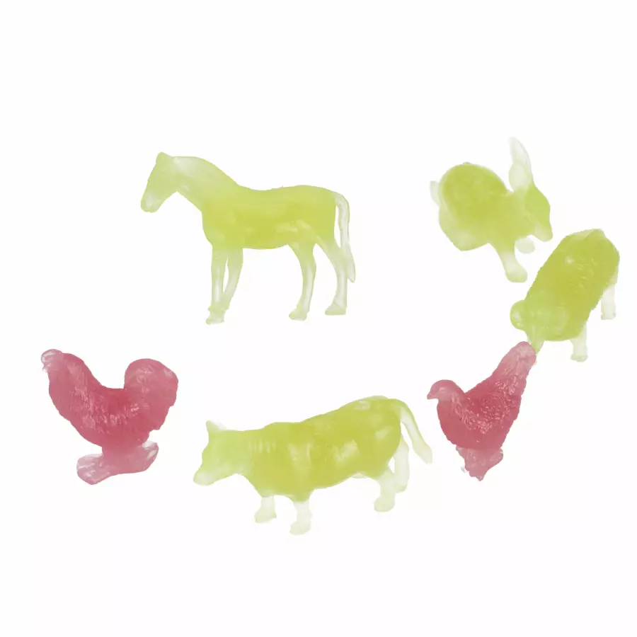 Zawartość saszetki: 6 szt. świecących w ciemności zwierząt.